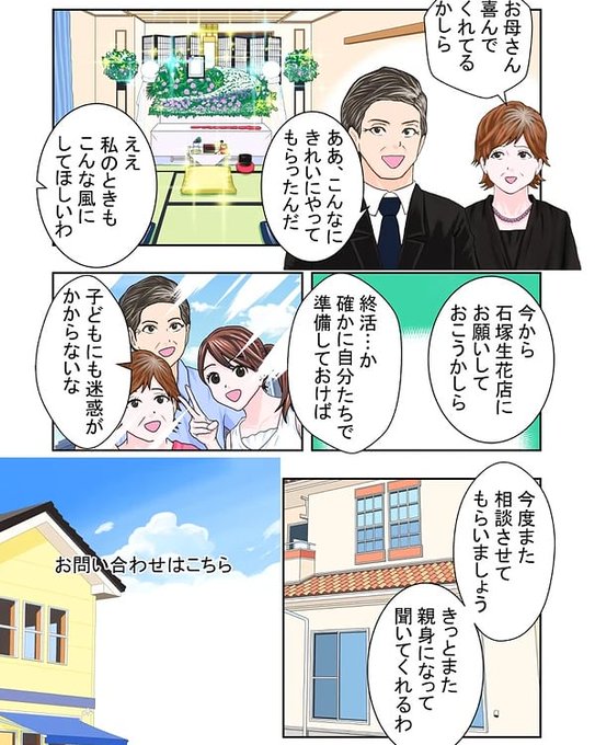 #マンガ #漫画 #企業向け漫画 #広告漫画 #CLIPSTUDIOPAINT #CLIPSTUDIO #カラー #カラー漫画 #背景 #イラスト #デジタルイラスト #花屋 #花 #葬式 #空