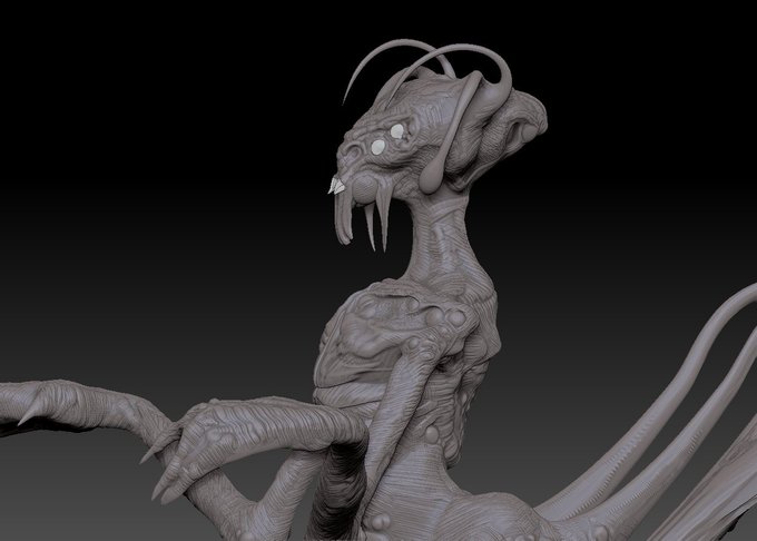 Good Night! update #creature with #zbrush from a cube #3D #Monster #modelling #filmvfx #gamedev #sketch #monster #sculpture #thefrisbeeman