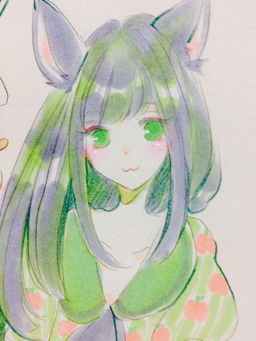 ワンドロ③はリボン♡ネコ♡メガネ♡黒井猫さんがいらっしゃったから黒髪ロングにした(°▽°)リボン率が低かったな〜フルーツとネコと言ったらサザ◎一択でした(°▽°)