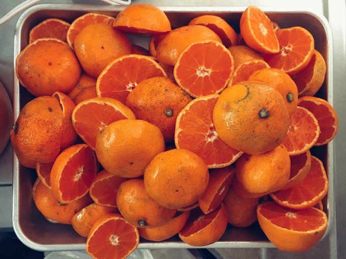早期退職して瀬戸内で農家を始めた父、採れたミカンを沢山くれました。最後に少し残ったものを思い切ってジュースにしたら2リットル分くらいに…冷蔵庫の中で結構な迫力。小玉なわりには味が濃くて凄くあまい、来年は皆さんにお知らせ出来るかも知れません。その際はよろしくお願いします🙇