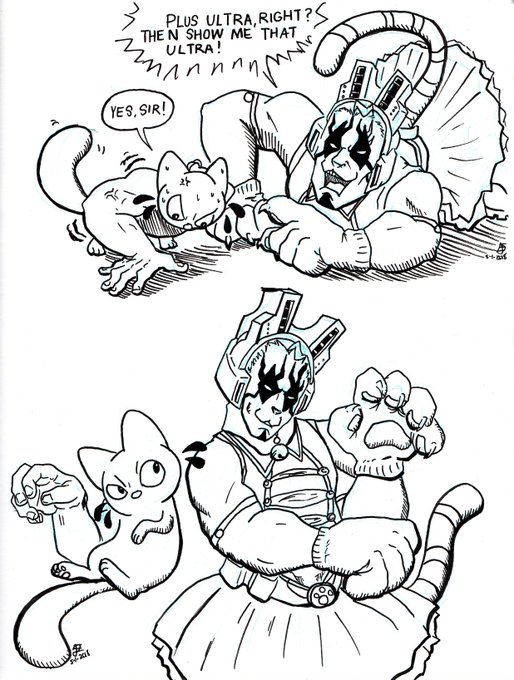 Watching #MyHeroAcademia with my roommates recently. I saw Tiger and I had to draw him with SwolCat! #SwolCat is the unofficial mascot of the Wild Wild Pussycats with his own outfit!