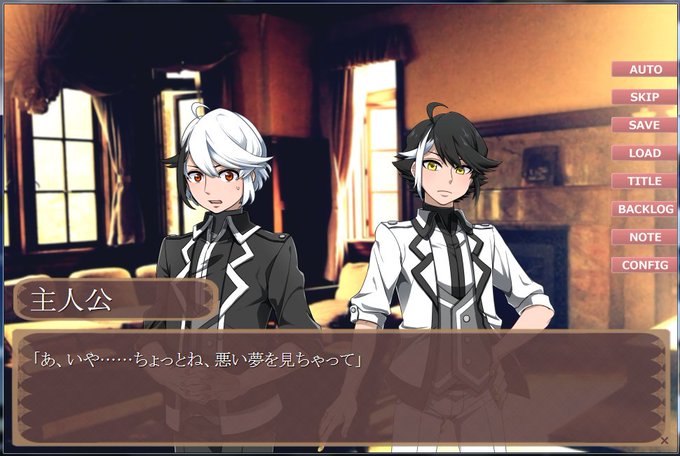 イラストはほとんど提供していただいたものです。私はシナリオとスクリプトメインで、男女も百合も腐向けも書いていきたいなあと! #フリーゲーム制作者さんと繋がりたい