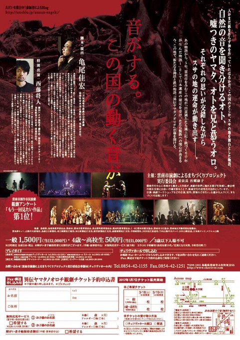 メンバーの合田が、雲南市創作市民演劇『異伝ヤマタノオロチ』に出演することが決定しました。