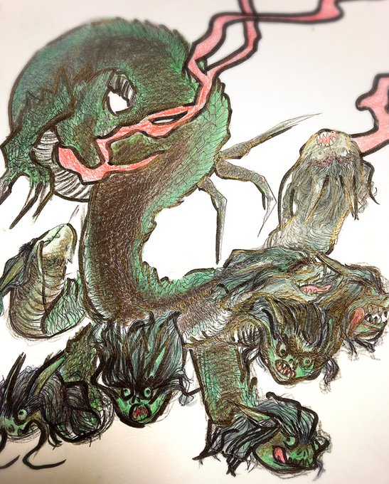 本日はヤマタノオロチの原画をご紹介。進化後の姿は本当に禍々しいです……。他にも多数、日本、中国に由来する魔神の原画を9/6(水)に追加予定です!乞うご期待! #デモンズゲート