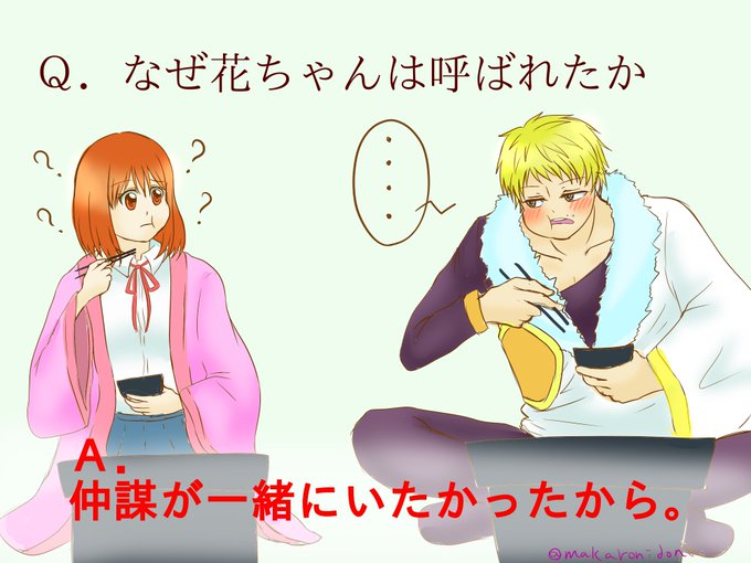 花ちゃんを引き抜きに某学園の孟徳理事長が口説きに来ましたが、孔明先生が阻止しています。他キャラも描きたかった_(┐「ε:)_