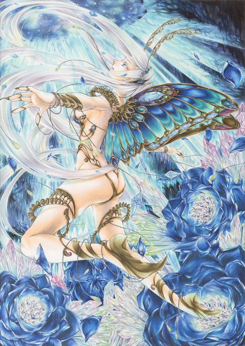青い蝶の絵は2016年の作品ですが、グループ展に向けて描いたもので、B3という大きめサイズに挑戦し、個人的にもありとあらゆる意味で攻めた作品(笑)なので、めちゃくちゃ思い出に残ってます😌
