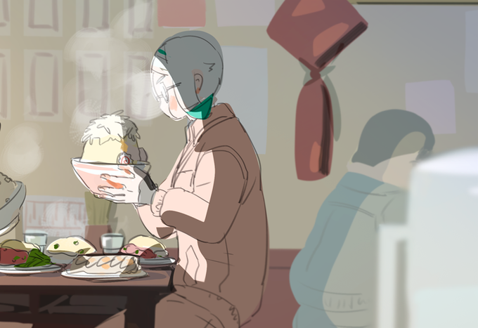 めちゃくちゃ食う謎の常連客(近所の工場勤め?)を