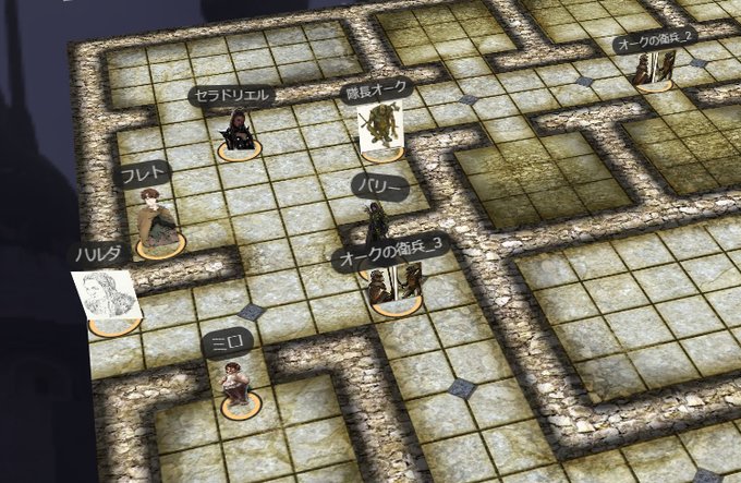 敵の本拠地をこそ~り探索!扉を開けたらお昼寝中のトロルがいてヒェッとなったりしつつ、子供たちが捕らわれている部屋へたどり着く!オークたちと戦闘に入るとみんな一回ずつクリティカルを出して大盛り上がり!無事撃破して救出!🙌