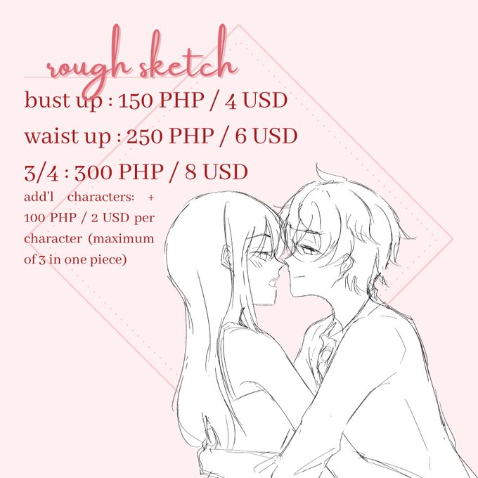 hello! I'm opening commissions! Slots are open until further notice, please feel free to reply or dm if you're interested in availing a slot, thank you so much! likes and retweets are greatly appreciated too ₍ᐢ.ˬ.⑅ᐢ₎