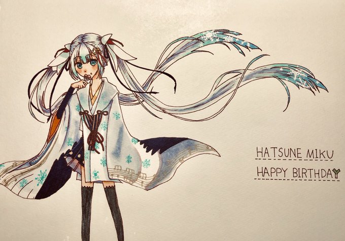 夜中気付いて急いで描いたからあんまり時間かけれなかったけど、ミクちゃんお誕生日おめでとう!!!!!