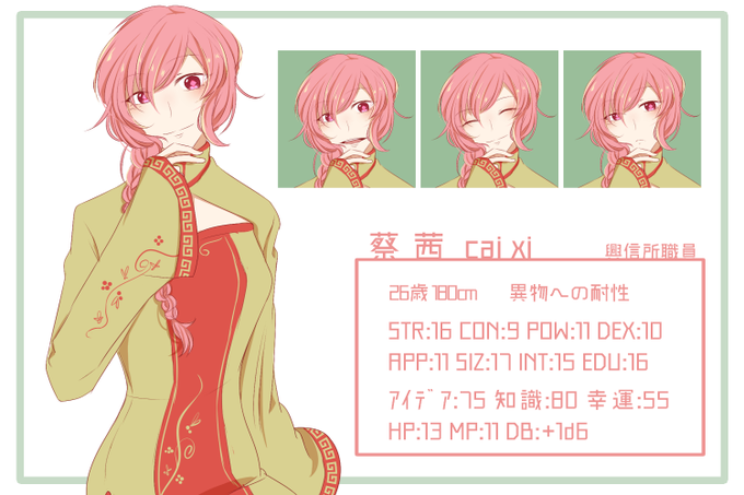 @PCS_TL 明乃羽奈、看護師をやっていて雇い主の所に同居させていただいている。さばさばした性格で音楽を聴くのが好きでウォークマンを持ち歩いており、同居人の影響で中華系の衣類が増えて…いるんだろうな…(中の人は中華大好き