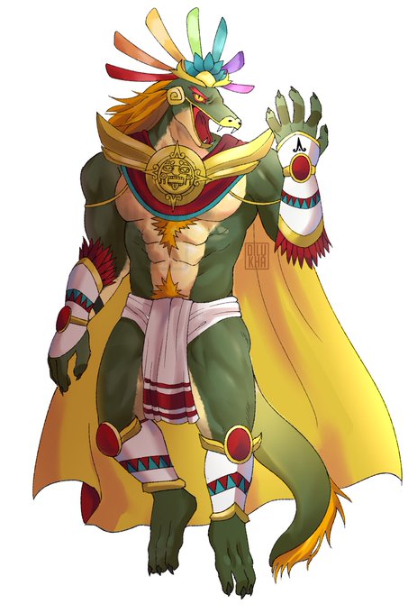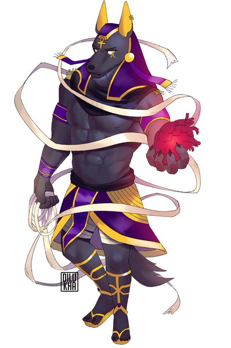 some mythology-based character designs for a school project...... anubis, quetzalcoátl, ziz and melusine