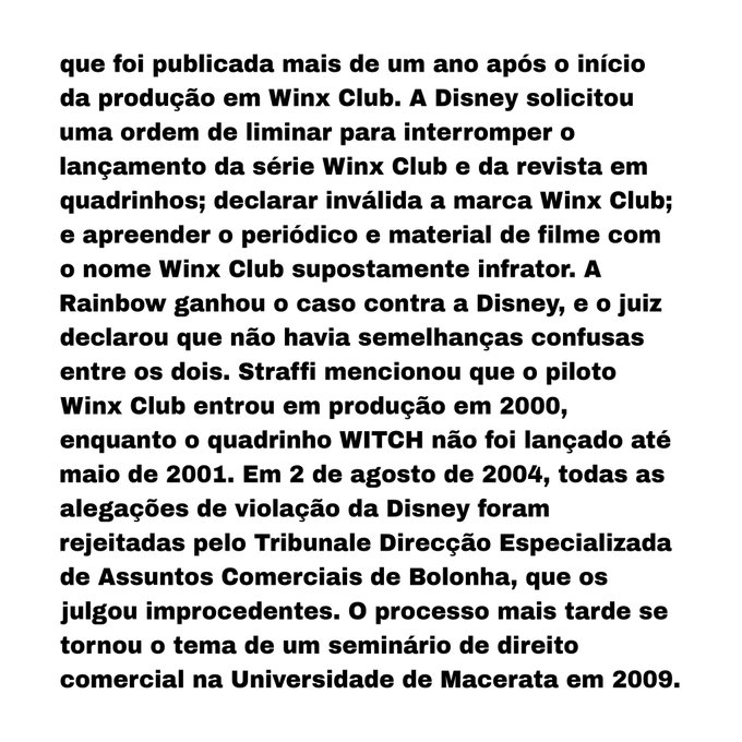 Em abril de 2004, A Walt Disney Company entrou com um processo de violação de direitos autorais sem sucesso contra a Rainbow. A empresa acusou Rainbow de copiar o conceito Winx Club de sua revista em quadrinhos WITCH +