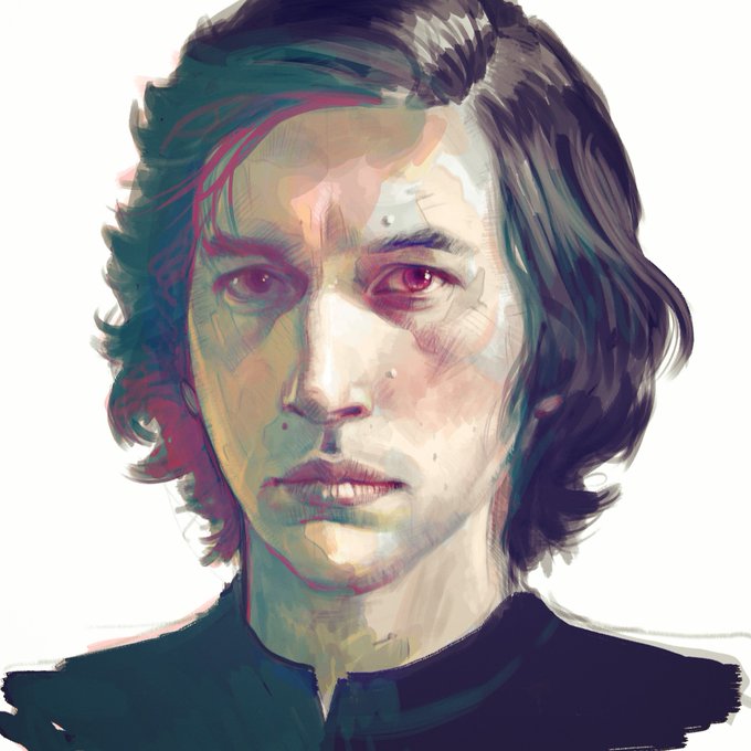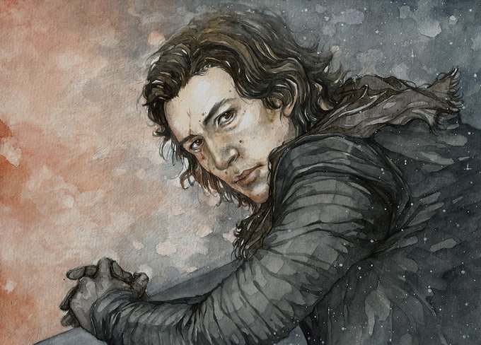 Yes I know. Too much #kyloren but just look at his precious face ♡ #adamdriver is just too hot. #starwars #bensolo #starwarstfa #artistsontwitter #kylux #traditionalart