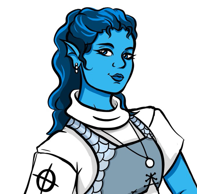 Meet Gilbetta Fakinot, sea elf Cleric/bard/druid. played by @nerdnarrative She loves to swim, kill undead, and hang with her new wife. Devoted moon priest.