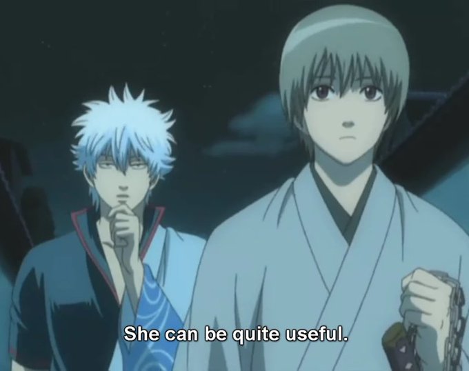 Kagura "Any funny moves& I'll pop you in the kisser" Sougo "you're the only one who's funny in the head" Love them both 😂 #gintama #anime