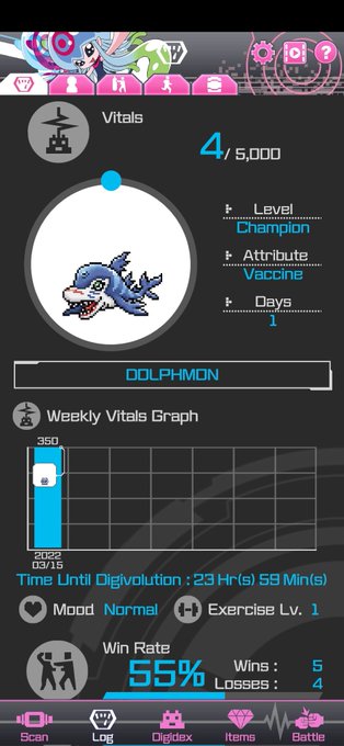 Sucedió ayer, pero no se ha podido subir hasta hoy, y es que @SonOfMonkeyYT ha comenzado una nueva línea evolutiva (¡la última!) en la DIM Card de Jellymon, ¡decid hola a Dolphmon! 🐬