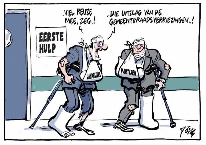 Rake #cartoon van Tom Janssen in #Trouw over de uitslag van de #gemeenteraadsverkiezingen2022!