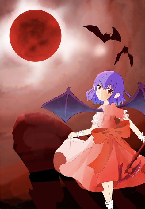 赤い月と✨カリスマ✨ #東方 #東方Project #イラスト #レミリア #レミリア・スカーレット #7月9日はレミリアの日 https://t.co/1rN9AjdyO2