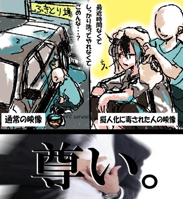 深夜テンションで愛車を洗車するときの光景を一般人と擬人化した二つの目線で描いてみた。 ハチロクじぃじにずぶぬれになっていただいた。 とりあえず擬人化は可愛いのだ、うまく伝わらないが、可愛くてたまらないのだ。
