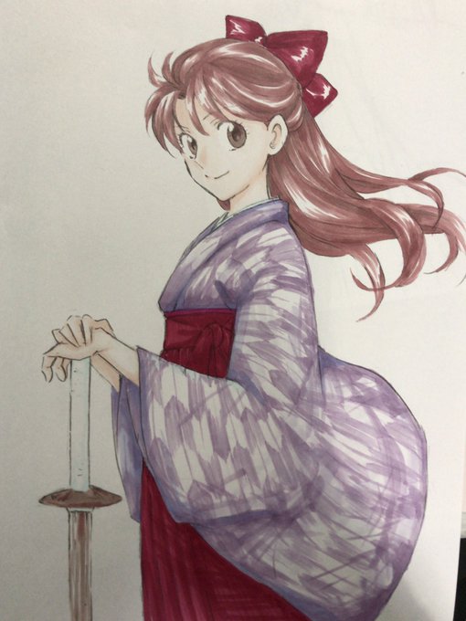 この絵はなすかさん(@NaSka_Style )に塗ってもらいました。矢絣袴、かっこいいよなぁ。