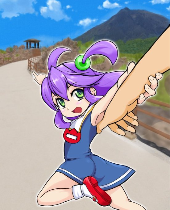 桜島を散歩する えこちゃん を描きました。