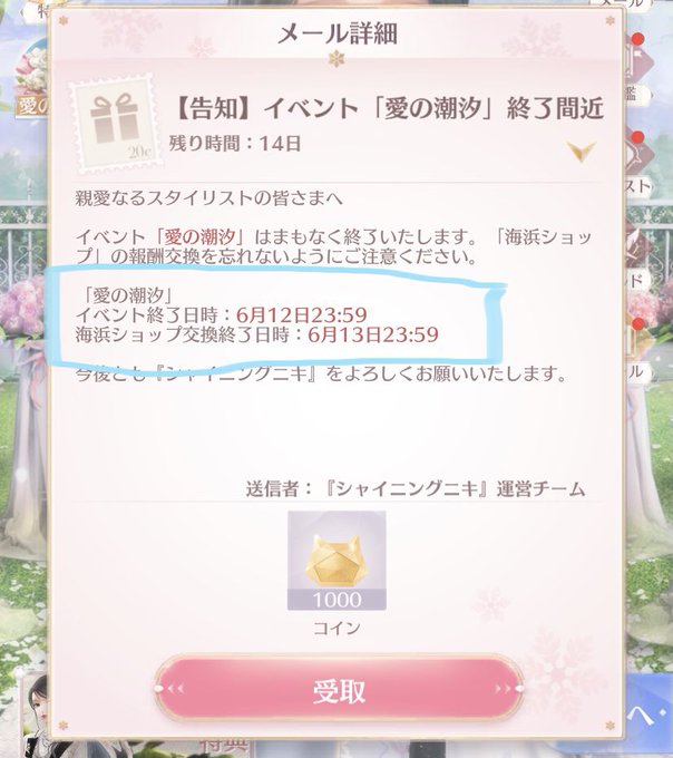 初URイベントお疲れさまでした〜! パーティー開いてますので、ぜひ参加してね🤗💕 イベント終了とショップ交換期限が違うので気をつけてね( ᐢ˙꒳ ˙ᐢ ) #シャイニキ #シャイニングニキ