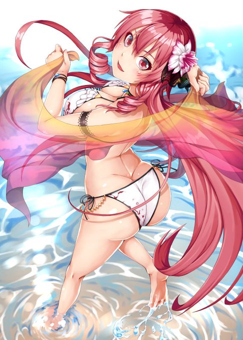 夏ボイス2でデンドロ師匠からプールのチケットを貰って(たぶんデンドロ師匠の気遣い)、団長を誘うカトレアさんが可愛すぎたのでラクガキしてみました