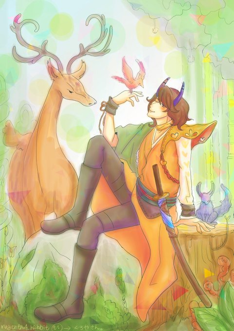 サムラブちゃんてなんだろ?と考えたらとってもファンタジーな存在じゃないかな?動物とか寄ってきそうだなという勝手なアレです。あまりしない色塗りしたのでぐずぐずですんません