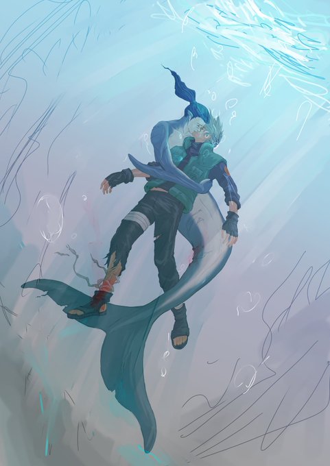 任務で乗った船が嵐で大破して、たまたま乗り合わせてた🐬が獣人で。的なイメージ、って説明しておく\(^o^)/