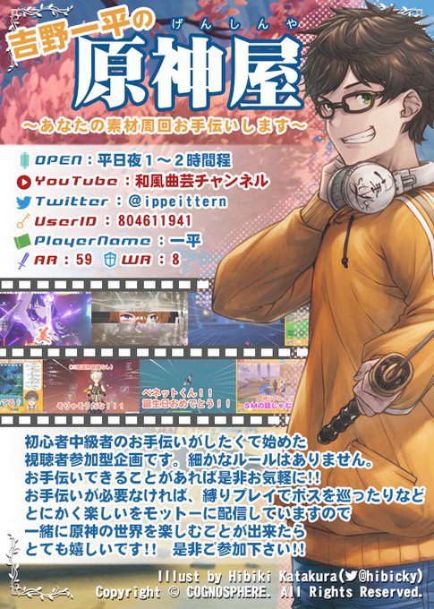 宜しければ以下のURLで、本日22時より、2時間ほど視聴者参加型の原神お手伝い企画をやっておりますので、是非遊びに来て下さい!🙌