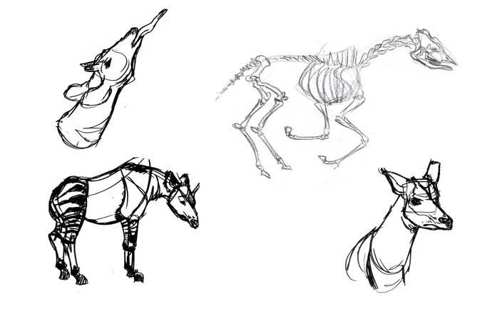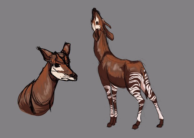 Some sketches/color studies of Okapi (plus some bonus sketches of Maned Wolves) 🤙🏻