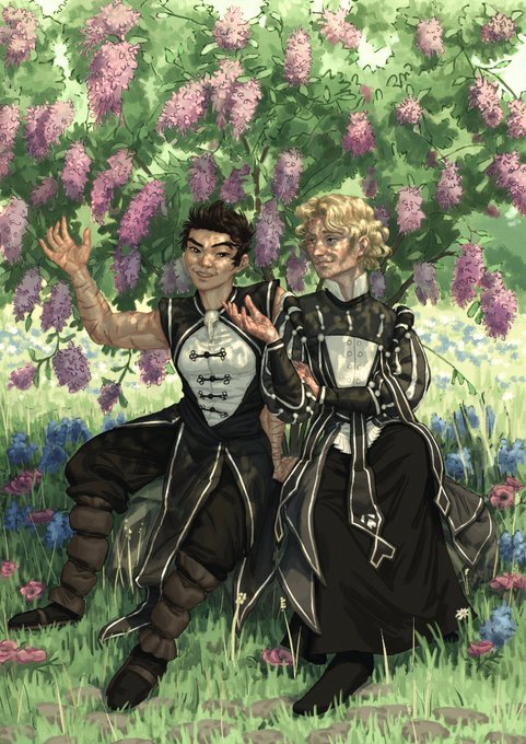 @alexandersallen I have so much art of my babies! First is by me, 2nd is by @/kittensartsboo1 and 3rd/4th are by @/ThatJacksArt (I love that he drew them as he imagined them reading the book rather than look at my references, his take on my mc Quincy is borderline overtaking my own as canon)