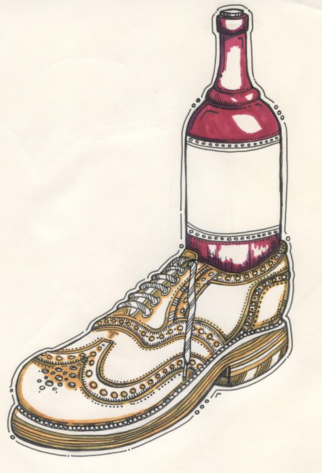 no cork screw! use a cuban heal or a brogues & a wall. #wine #corkscrew #drawing #illustration #brogues