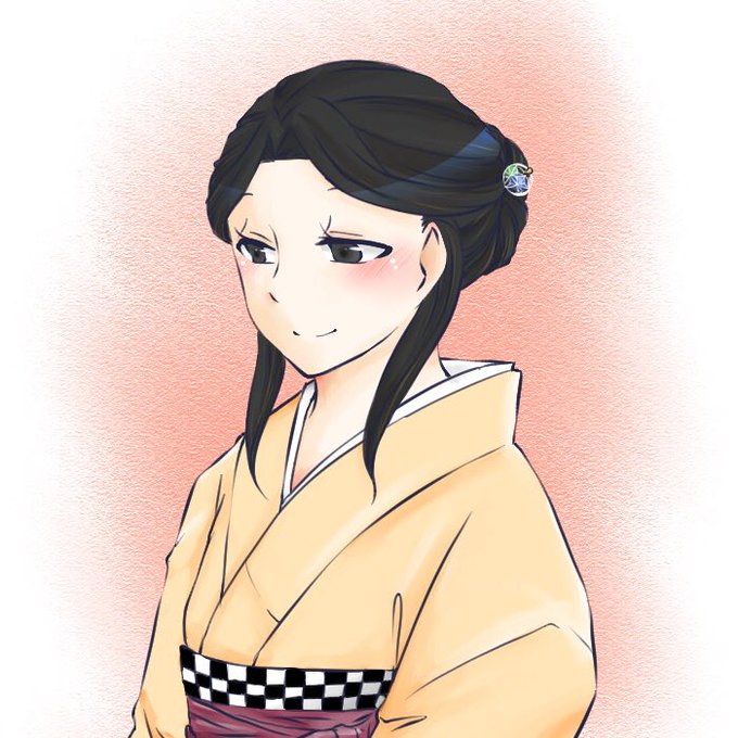 チトの浴衣描いてみたー 浴衣はピンクの雪輪模様にしてみた