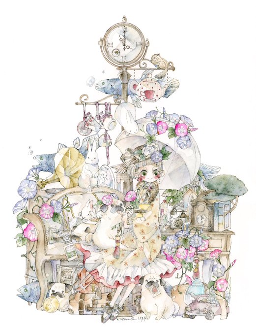 #正直に言いますフォローしてほしいです 淡い色を使って女の子と動物を中心に花やインテリアを描いてます。
