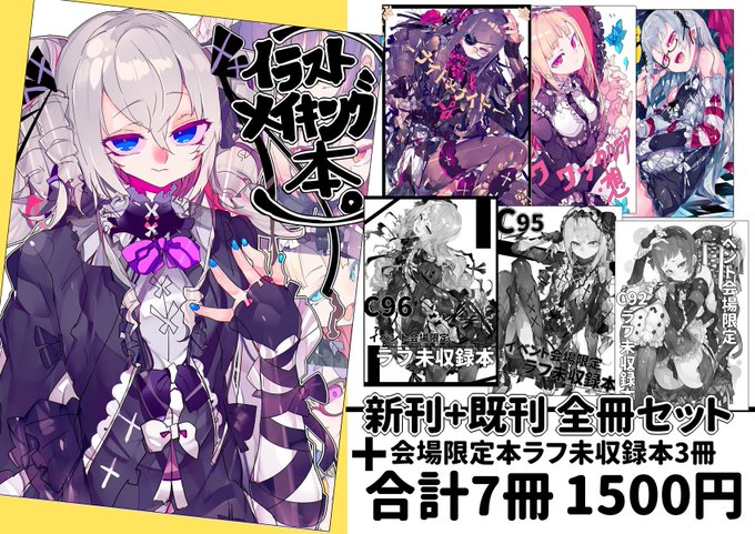 【ゴスロリ系イラスト本7冊全冊セット】1500円やアクキーなどを頒布予定です。