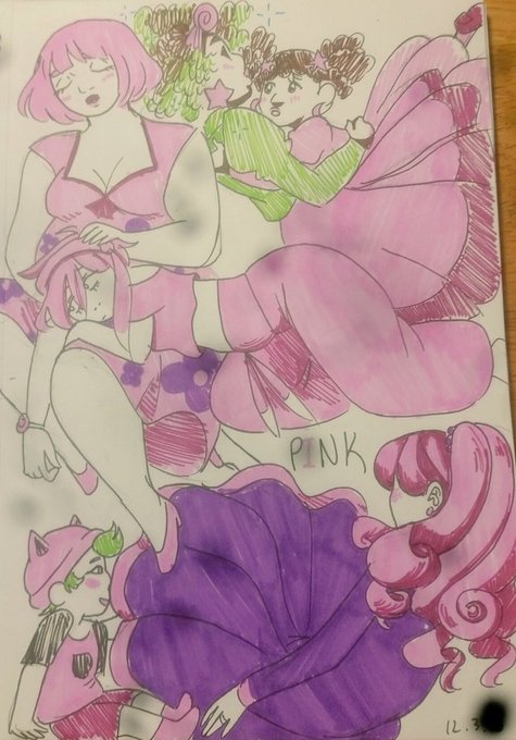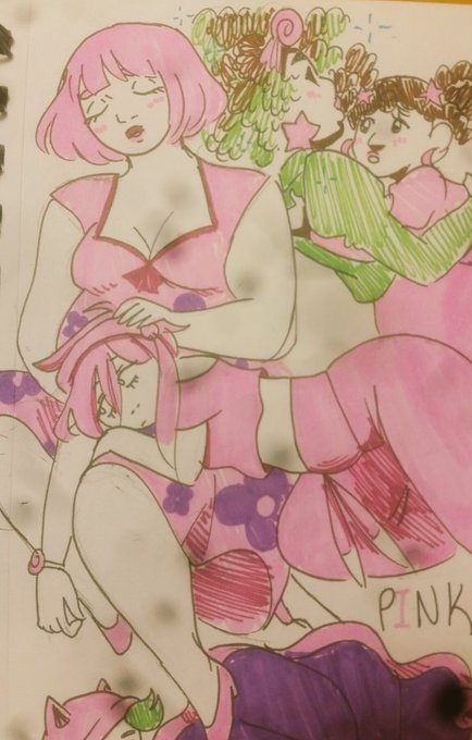 Doodled/coloree a page of majority pink gijinkas... I actually don't have very many...