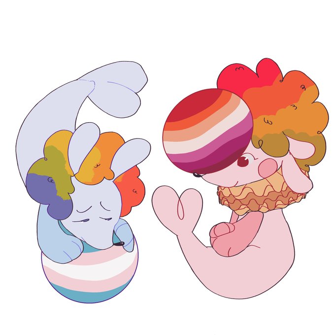 me and the lady @NeonJawbone doodle for pride :3 we are gay and trans!!!! happy pride!!!!!!!!!