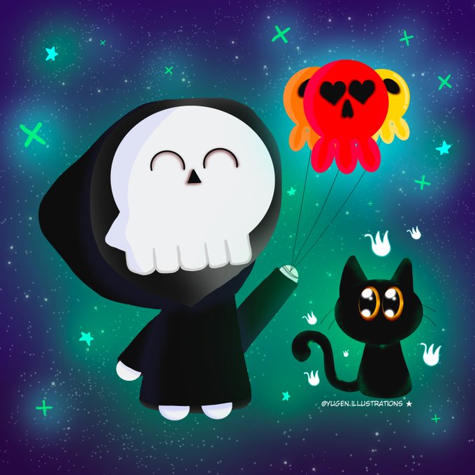I tend to draw a lot more kawaii and cute illustrations, though I'm slowly transiting to cute portraits. I mostly draw a lot of Sodum the Reaper and Kiki the cat.