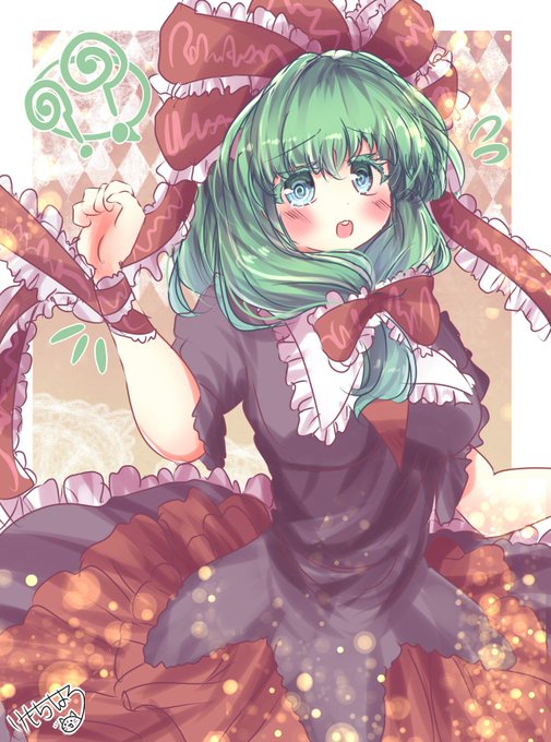 雛ちゃんはお洋服にリボンが沢山あるよね、…ちょっと引っ張ってみたいな、えいっ!『きゃっ!?な、何なのいきなり…』ごめんごめん、つい可愛いから…びっくりさせちゃったね。