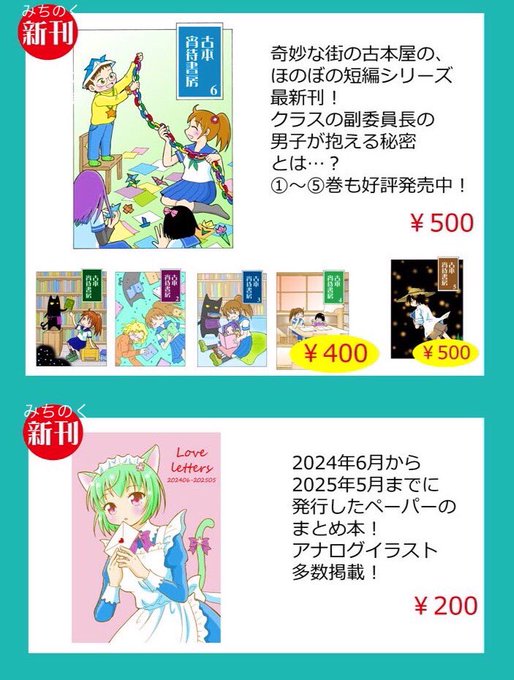 6月東京コミティアの新刊2冊を持っていきます!あと古い既刊を値引きで販売します!色紙もあると思います〜