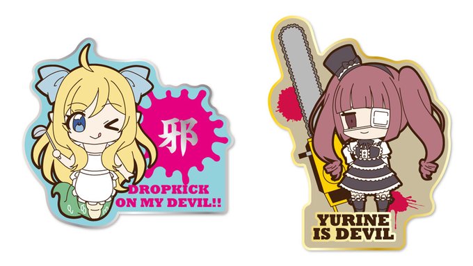 絶賛放送中の『邪神ちゃんドロップキック』から、描き起こしたイラストを使用した「邪神ちゃん」「花園ゆりね」の着脱式ワッペン、アクリルキーホルダー、劇中の小物ノートが登場です。
