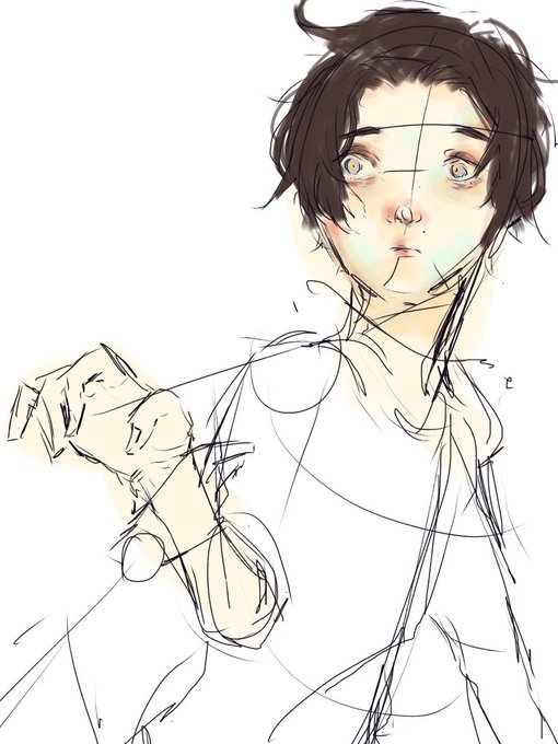 1枚目 一番新しい さっき描いてたヘンディー。仕事ばっかりしてご飯食べてないのを医者に指摘されてびっくりしてる。