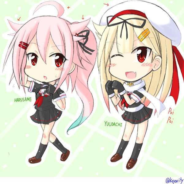 #艦これ版深夜の真剣お絵描き60分一本勝負 春雨とついでに夕立。ゲームでもっと絡んで欲しいお二人です。