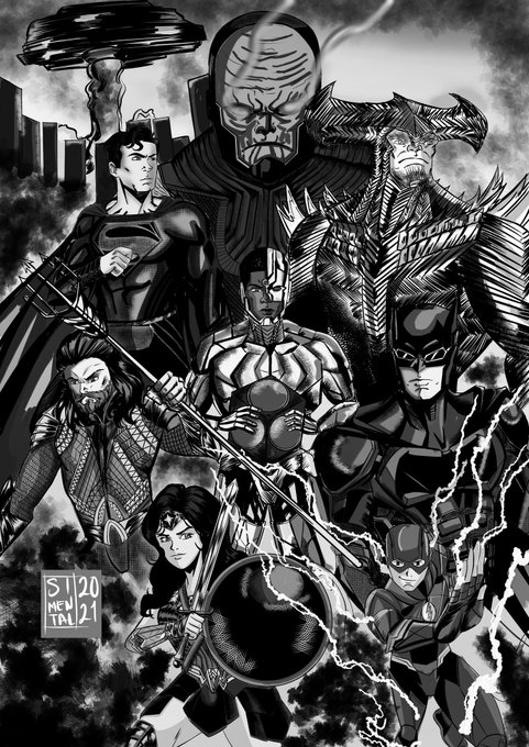 Aprovecechado la llegada del #SnyderCut quise hacer mi propio poster illustrado a color y en blanco y negro como le gustaría al buen @ZackSnyder espero les guste.