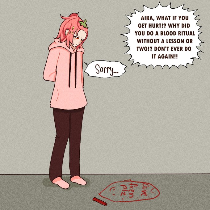 Aika tried to summon a friend using a blood ritual (cause she thought if you do a blood ritual, you can summon anything)