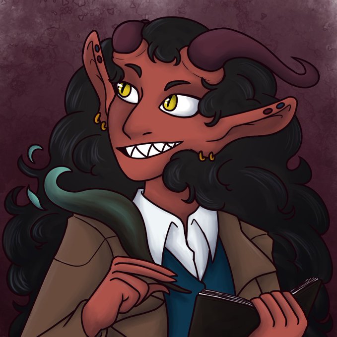 Veltari embodies everything I love to draw. Horns, sharp teeth, cat-like eyes, and super poofy hair.