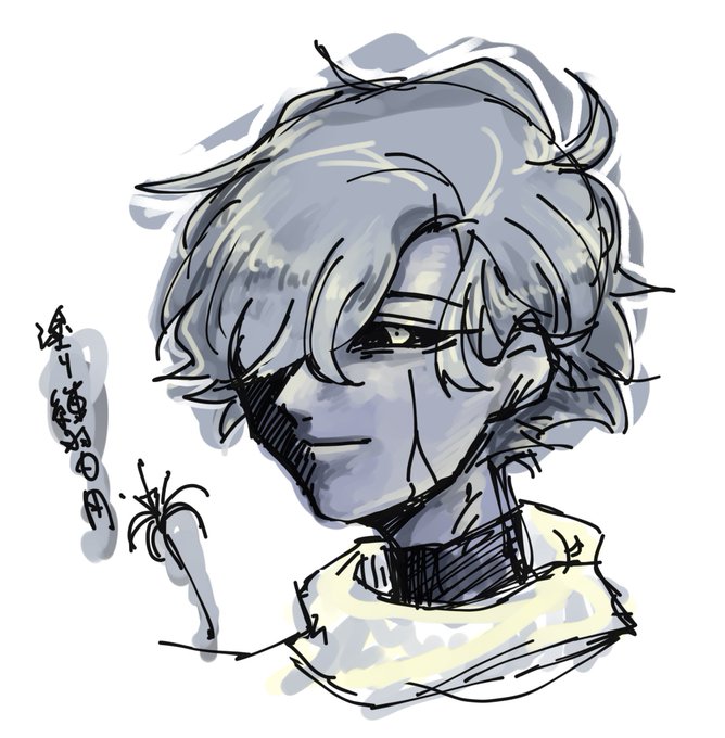 今回は何年ぶりかのカラーインク。グレーのインクがちょっと腐ったみたいになって飛び散ったのをフォトショさんに助けていただきました。こちらは久々だったので、試し塗り用にちょっと描いた。こんなのも浮かんでたのだけど、さっき上げたのに落ち着いたのはよかった。#リアロマ延長戦