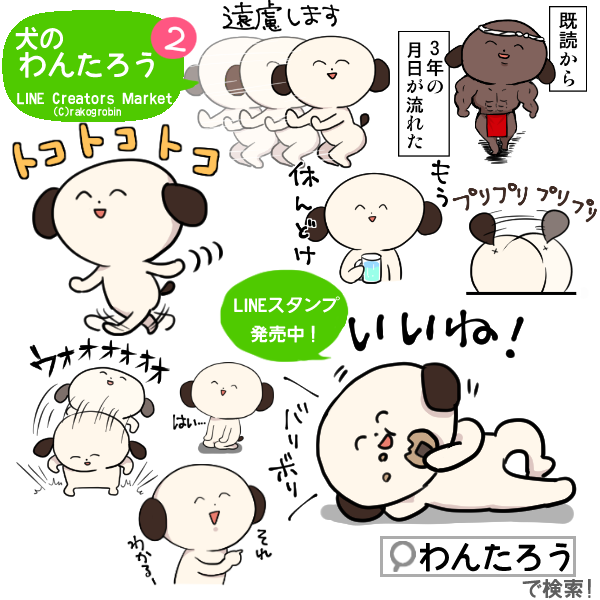 妹(@den_apo)と共同制作、配信中のLINEスタンプ「犬のわんたろう」(https://t.co/cannGHfWWO)でございますが、各お取引先企業様社内での普及が着々と進んでいるとお知らせ頂いたのであった。なんかすみません!